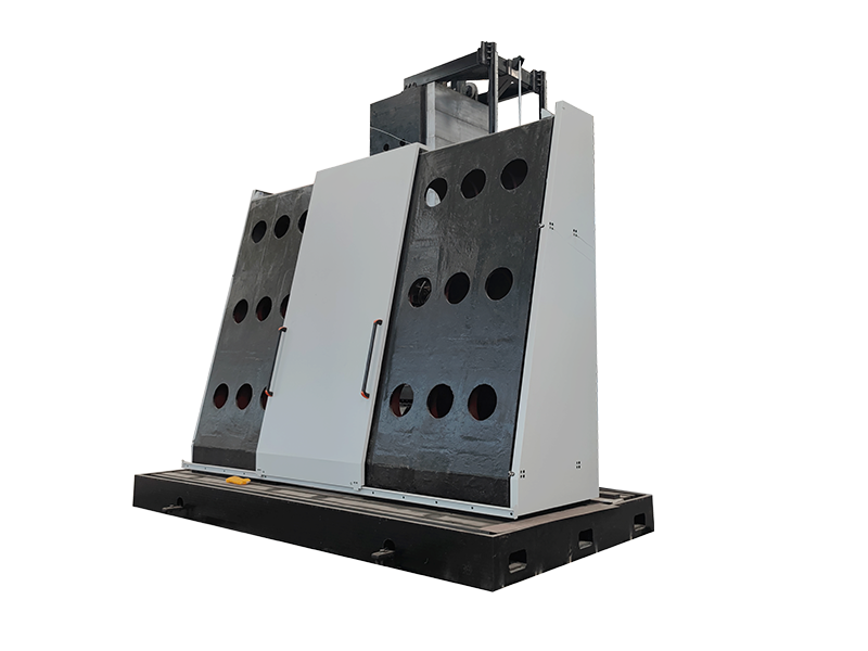 本機(jī)床主要由床身部分、立柱部分、雙主軸進(jìn)給滑臺(tái)部分、工作臺(tái)及彎板部分、電氣部分、數(shù)控部分、液壓部分、潤滑部分、冷卻部分、排屑部分、防護(hù)部分等組成。